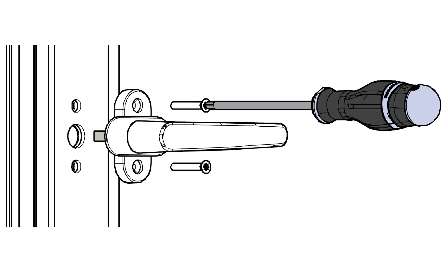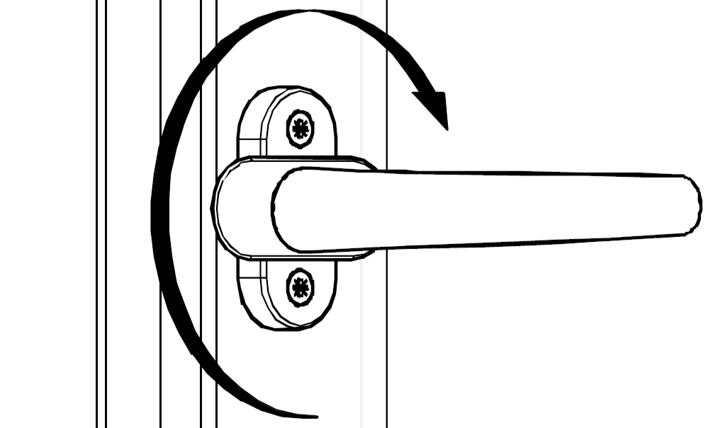 window handle to the 90° position and pulling the handle towards you. Once the window is open, proceed to turn while slightly pulling the screw cover to make the screws accessible
