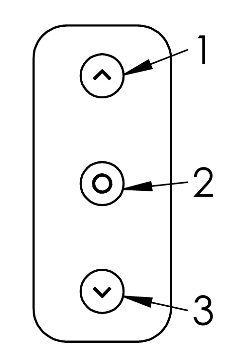 Press & hold center button (2) for 3 seconds - Tarken will go into manual adjusting mode(red LED turns on). Then by holding down arrows (1) or (2), Tarken’s connector distance to the anchor can be adjusted.Press center button (2) again to go into spindle adjusting mode(blue LED turns on), where by holding down (1) or (3) Tarken will turn it’s spindle. Use this to adjust Tarken to match your window. Press again to return to regular mode(LED-s off).