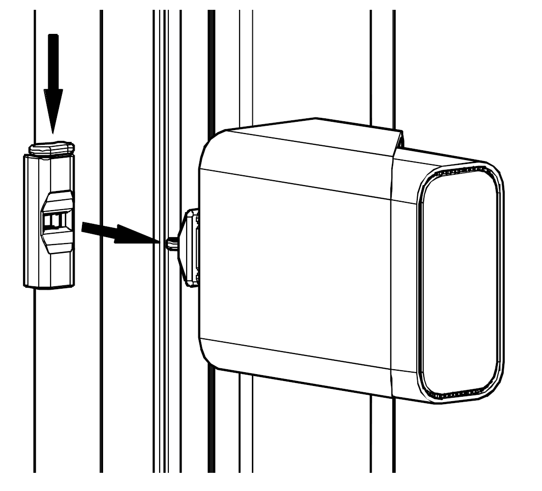 Tarken device while slowly closing the window. Once the anchor touches the wall, apply pressure to make sure the sticker glue holds. Let the glue cure for 15 minutes before using the device.